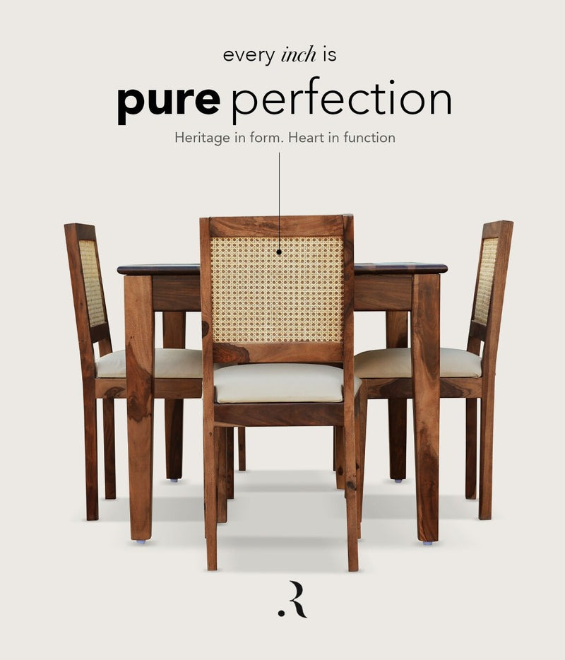 Wooden 4 Seater Dining Table Dimensions: Length (85 cm), Width (85 cm), Height (76 cm), Chair: Length (42 cm), Width (42 cm), Height (88 cm), Bench: Length (55 cm), Width (40 cm), Height (42 cm) Product Material: Solid Sheesham Wood, Color: Honey Finish, Style: Contemporary This 4 Seater dining table set makes for a great addition to your home. This Dining Table set has an extremely modern and contemporary look that helps you set up a stylish dining space in your home. Smooth dining table set finishes let you easily wipe them clean to take care of messes, so your dining set can maintain a new look through years of use, Crafted with a durable, rust-resistant solid wood, this set is built to remain sturdy for long-lasting use This dining table set requires basic self assembly at customers end and comes with self assembly (DIY) instructions along with necessary accessories.